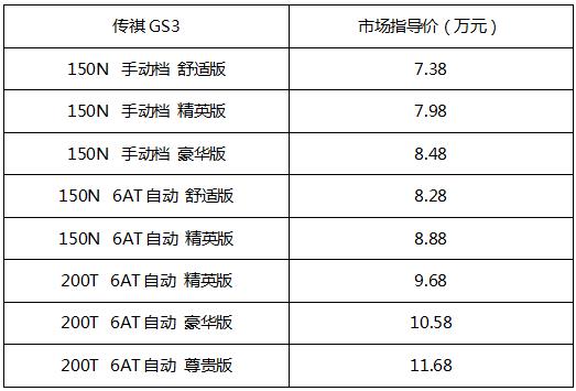 GS3搭载传祺第二代200T/150N高效发动机,其中200T引擎在1500转即可迸发出高达202Nm的峰值扭矩;匹配全新爱信6速手自一体变速箱,换挡平顺,超低油耗领先同级。安全方面,GS3采用GAC 2.0高强度钢车身,还配备6安全气囊、直接式TPMS智能胎压监测,全方位保障驾乘人员的安全。