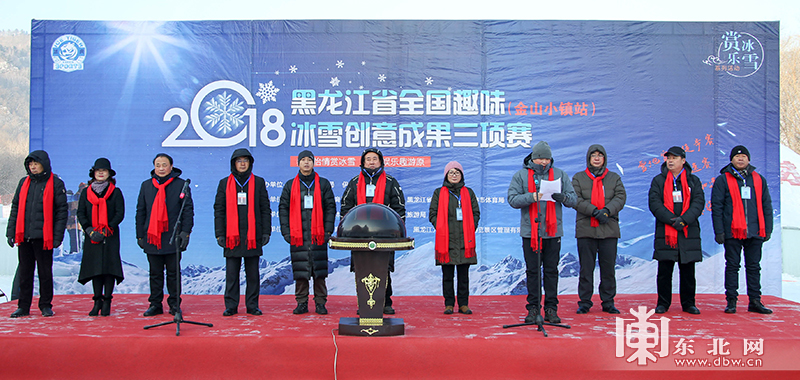 东北网1月6日讯(记者 安泽 许诺 程扬帆) 6日,“赏冰乐雪”系列活动之2018黑龙江省全国趣味冰雪创意成果三项赛(金山小镇站),在伊春市金山屯区九峰山养心谷风景区举行。赛事现场吸引了来自省内外各地的游客与体育爱好者的热情参与,来自韩国及国内14个省市的150余位冰雪体育爱好者参与角逐,引起了大波在场游客的驻足围观。