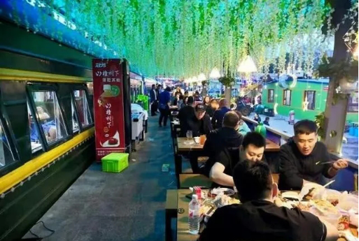 在七台河青园,有一座特殊的“小镇”,更是有着一条以火车为主题的烧烤商业步行街。这列绿皮火车,原是七台河矿务局客运专列绿皮车,于1989年1月开始正式运营,至2016年年末结束矿铁客运列车运行,小镇为了留下一个几代人的长久记忆,后来将其迁址桃山湖旅游风景区(青园)改造。不论是烧烤,还是档口,火车头小镇的夜宵早已成为了七台河人的习惯,习惯的坐在某一节车厢里电上一些烧烤,乐活畅谈。
