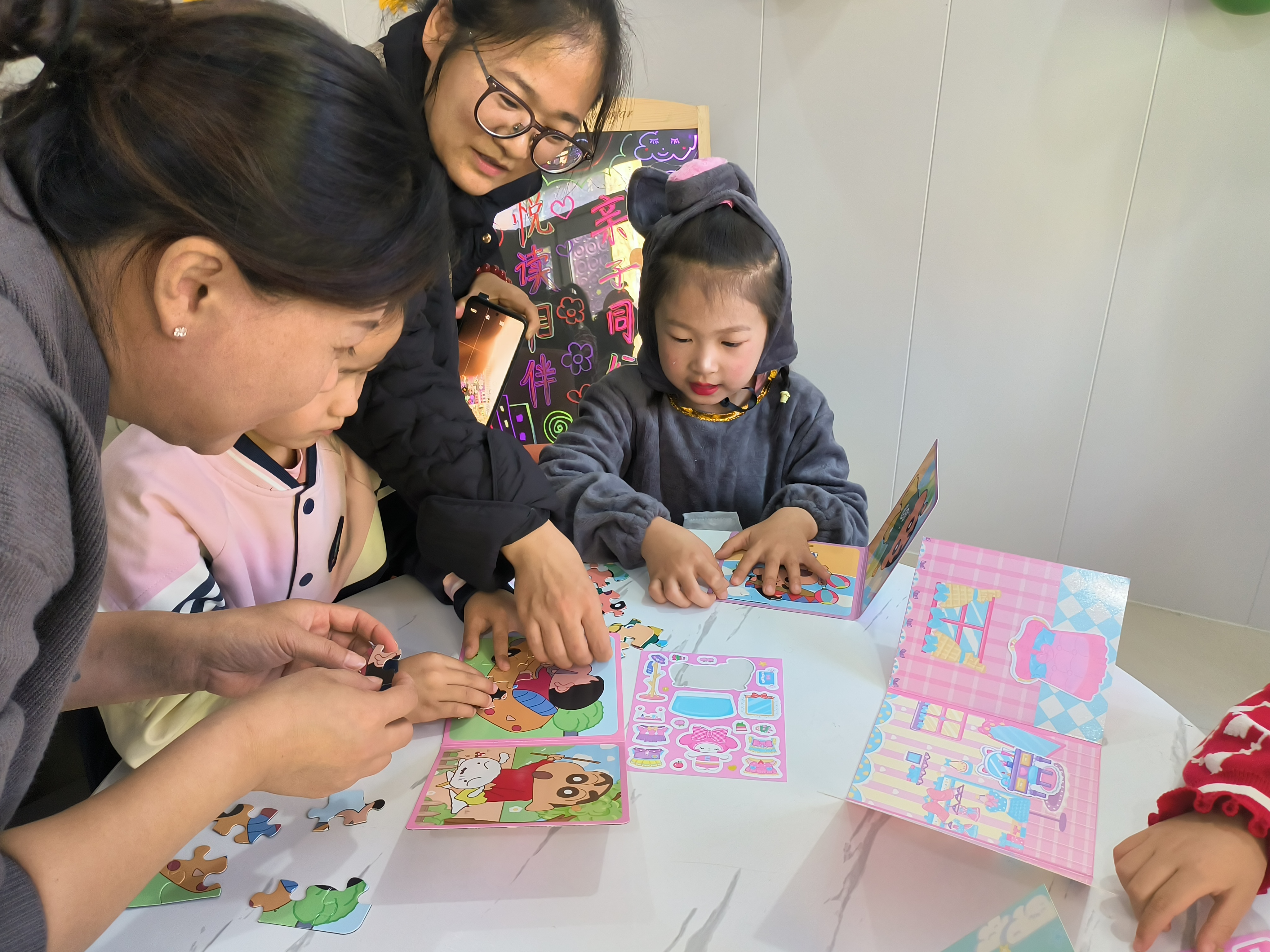 社区工作人员准备了拼图盲盒,邀请家长和孩子们共同参与,活动在阵阵欢笑声中结束。