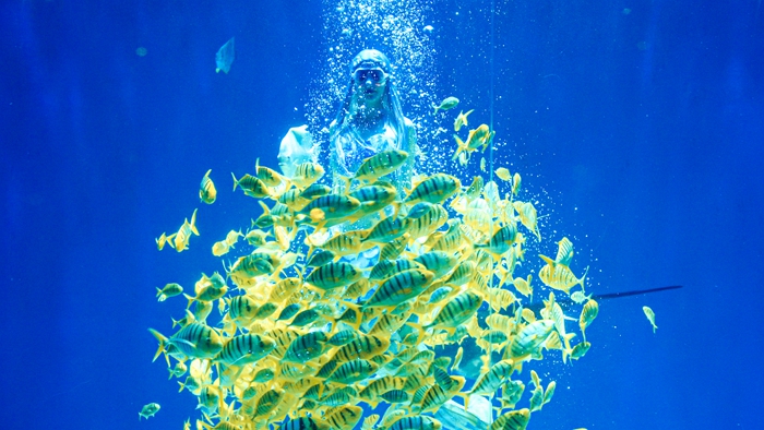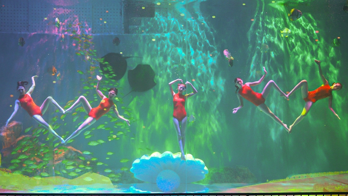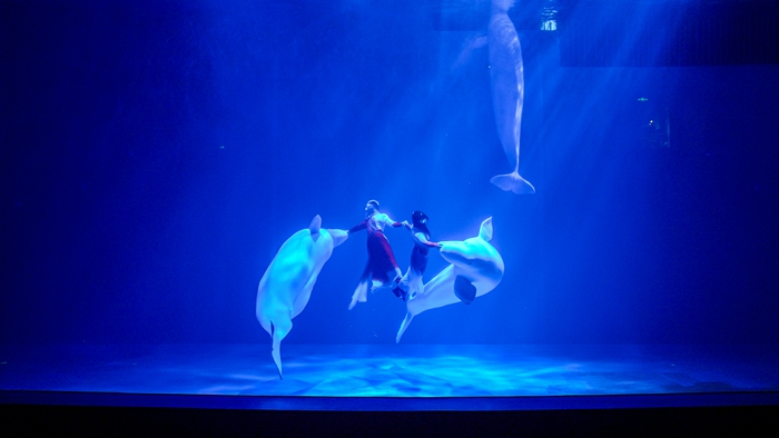 与此同时,哈尔滨极地公园用创意与匠心打造国庆专属表演盛宴,让全国游客在极地世界中感受节日喜悦,抒发爱国情怀。世界首创极地白鲸水下表演“海洋之心”将华丽升级为“国庆特别版”。在激昂澎湃的爱国旋律中,身着红色国风服饰的保育员将潜入蔚蓝冰海,与“海洋天使”白鲸默契共舞,徐徐展开印有“我爱你中国”的红色画卷,将爱国之情传递至每一位观众,场面震撼人心,令人动容;另一不容错过的视觉盛宴是全新编排的“国庆水舞秀”。国内顶级水舞表演艺术家将一袭红装,在水下演绎力与美的完美结合,前沿纱幕投影同步流转,从山河壮阔到科技腾飞,生动再现祖国建设历程,视听交织间致敬76载辉煌。此外,极地公园还将推出全新美人鱼表演,五位美人鱼公主从鱼群簇拥中缓缓现身,曼妙舞姿与梦幻场景交织,带来一场浪漫唯美的蔚蓝童话。
