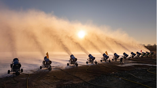 人工造雪是一项融合技术与经验的工作,造雪师傅们不仅需要操控机器,还需持续监控天气和雪质变化,以确保雪质符合建设要求。整个过程需要对风向、风速和气温、湿度等参数进行细致监测,并据此不断调整造雪机的各项参数。