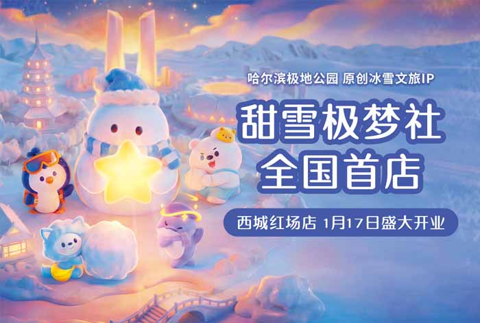 1月17日,哈尔滨极地公园原创全新冰雪文旅IP甜雪极梦社全国首店将于哈尔滨西城红场正式开业。首店以治愈系极地IP矩阵为核心,深度融合龙江冰雪文化与极地特色,标志着冰雪文旅IP实体落地、助推龙江发展首店经济迈出重要一步,也为冰城冬日文旅消费市场注入鲜活动力。