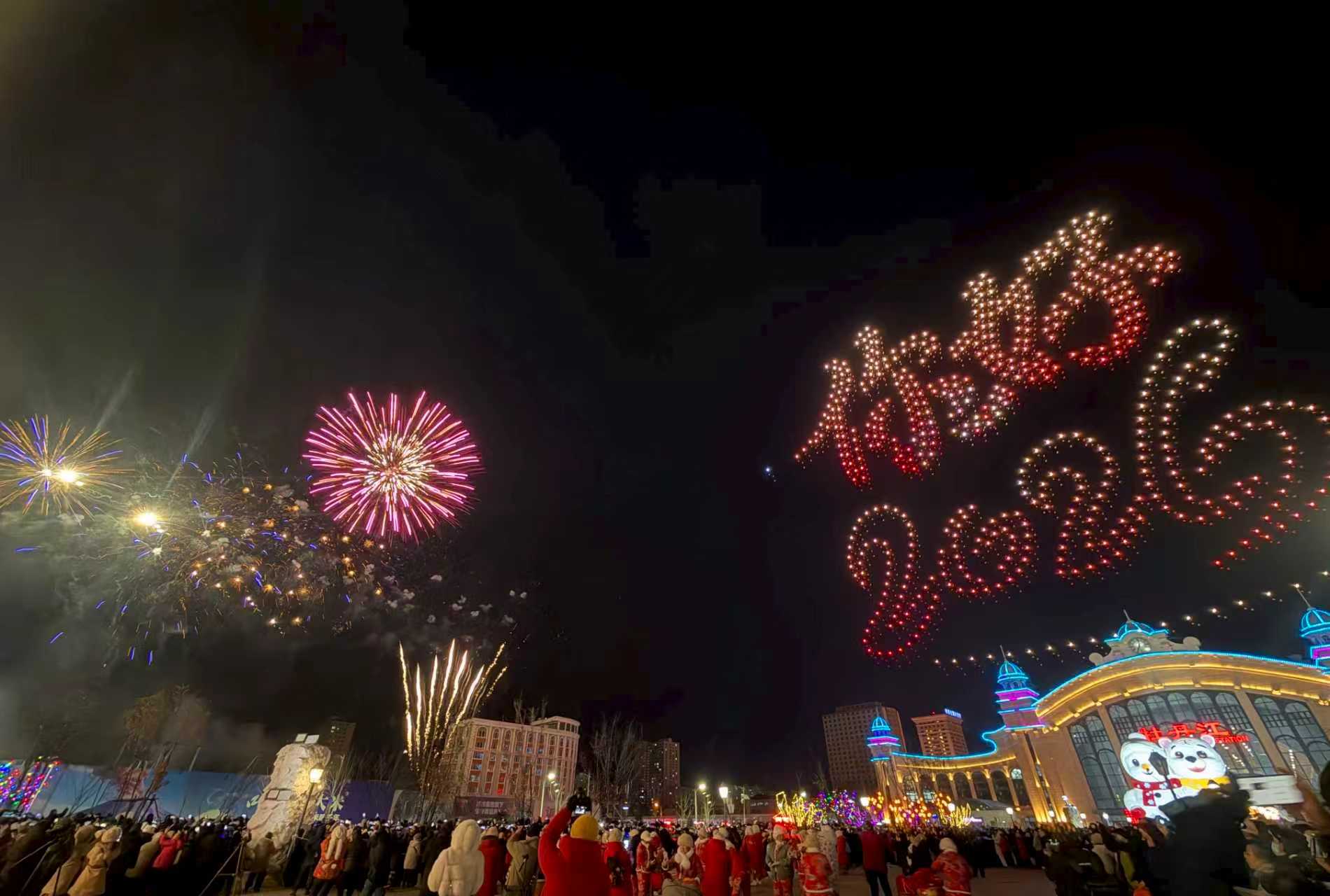 夜幕降临,牡丹江雪堡乐园内,一场颠覆传统的冰雪光影秀正在上演。