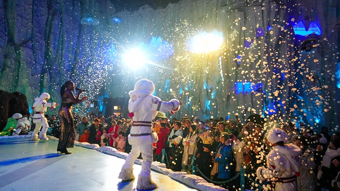为让游客沉浸式感受新春氛围,极地公园融合传统马年元素,精心打造多处新春主题互动点位。火爆全网的冰雪景观“冬日童话镇”换上新年盛装,满目“新年红”装饰将新春氛围拉满,成为游客定格新春美好瞬间的绝佳去处。同时,一系列趣味春节互动活动接连上线,财神现场派发红包送福、疯狂雪场打雪仗大赛、特制“冰剑”免费赠送等活动轮番开展,让游客在体验极地冰雪乐趣的同时,感受地道的东北新春年味,在欢声笑语中传递暖心新春祝福。