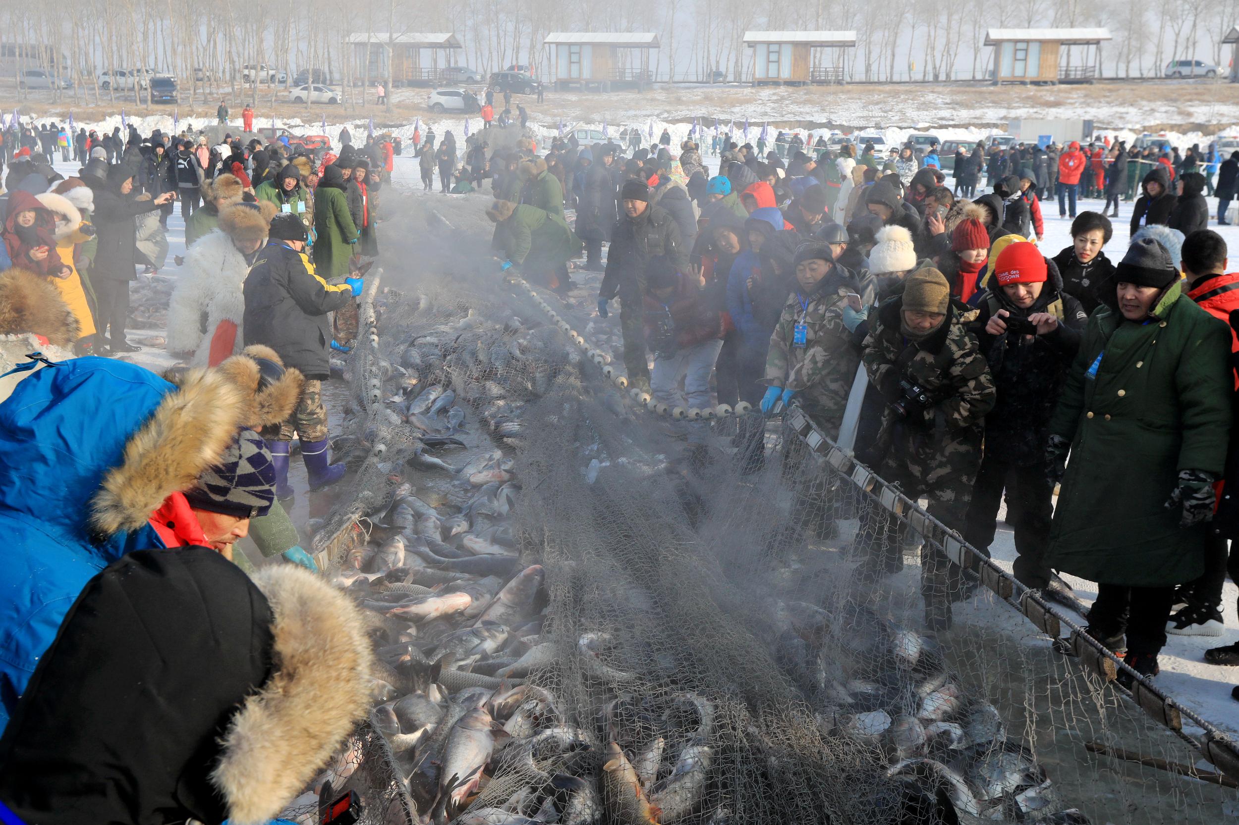 “一、二、三,拉!”镜泊湖冰面上,随着渔工嘹亮的号子声,巨大的渔网从冰窟窿中缓缓拉出,活蹦乱跳的湖鱼跃出水面,溅起晶莹的水花。围观游客们发出阵阵惊呼,纷纷伸手去触摸这份冰湖腾鱼的丰收喜悦。“这场景太震撼了!比在电视上看真切一百倍。”来自广州的游客林先生举着手机全程直播,屏幕那头的网友弹幕刷个不停。