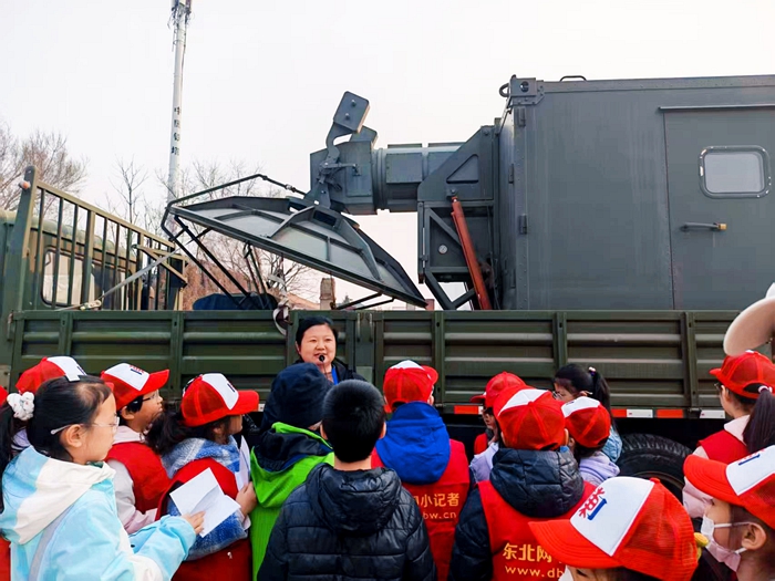 在气象雷达车旁,小记者们被这个“移动的千里眼”深深吸引。工作人员介绍,雷达车能够发射电磁波,探测云、雨、冰雹等目标物,并生成雷达回波图,为预报员提供实时数据支撑。“原来天气预报的第一手资料是这样来的!”孩子们边听边认真记录。